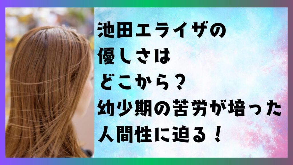 池田エライザさんについて、共演者やスタッフからよく聞かれるのが、「とにかく優しい」「人の痛みに敏感」という評価です。 その理由は、華やかな経歴の裏にある幼少期の苦労や生きづらさにあると言われています。 そんな池田エライザさんをひも解いてみ... -