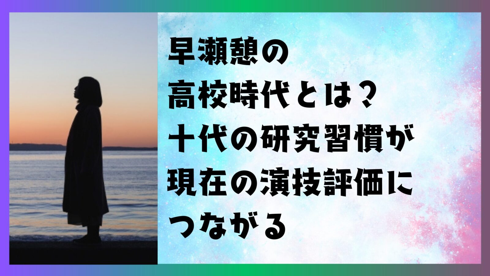 そこで今回は、非公表の部分を無理に断定せず、早瀬憩さんが高校時代にどのような姿勢で演技に向き合っていたのか、その習慣が今の評価につながる理由を深掘りしていきます。
