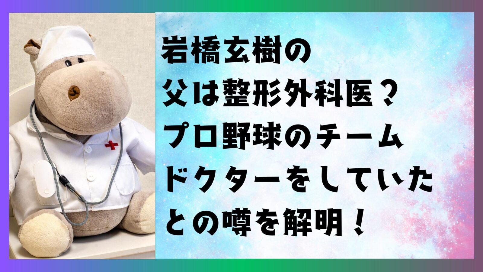 - 岩橋さんの発言から、お父さんは、プロ野球のチームドクターだった