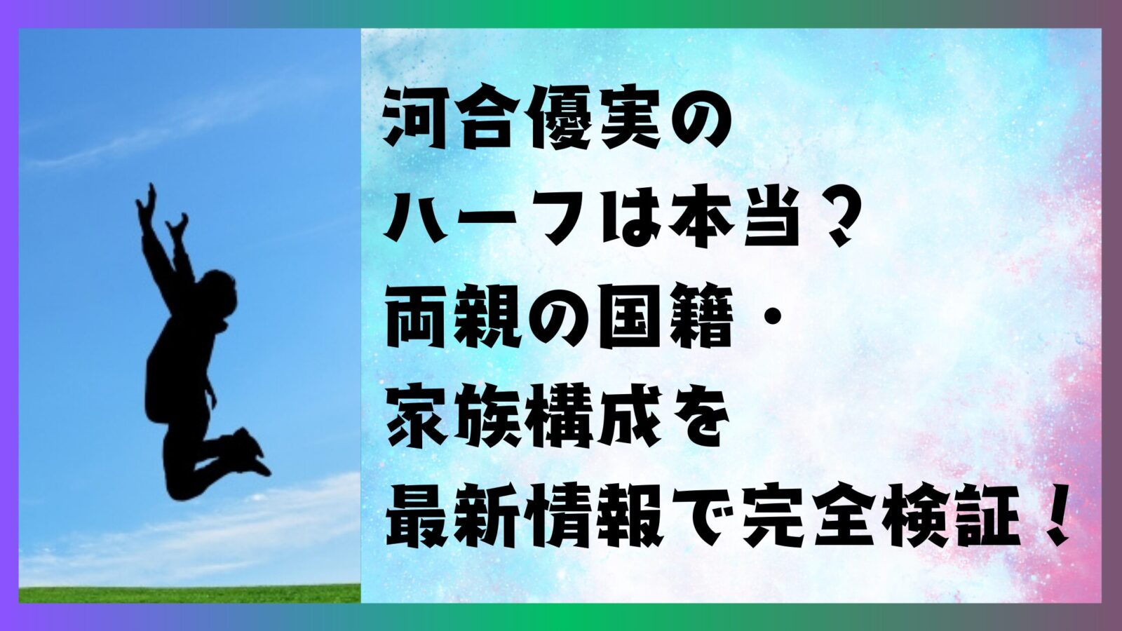 ここでの記事は、ハーフかどうかを題材にしていますが、忘れてはいけないのが、ハーフであっても、そうでなくても、魅力あふれる河合優実さんの今後の活動に注目や期待をして、さらなる飛躍をしていただきたいということですね。