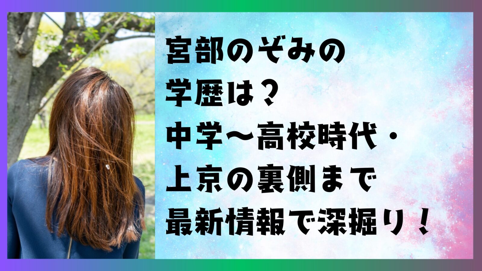 宮部のぞみさんの学歴は公表されていない部分もありますが、中学・高校・上京に至るまでの背景は、彼女の努力と家族の支えが詰まった大切なストーリーであることが分かります。