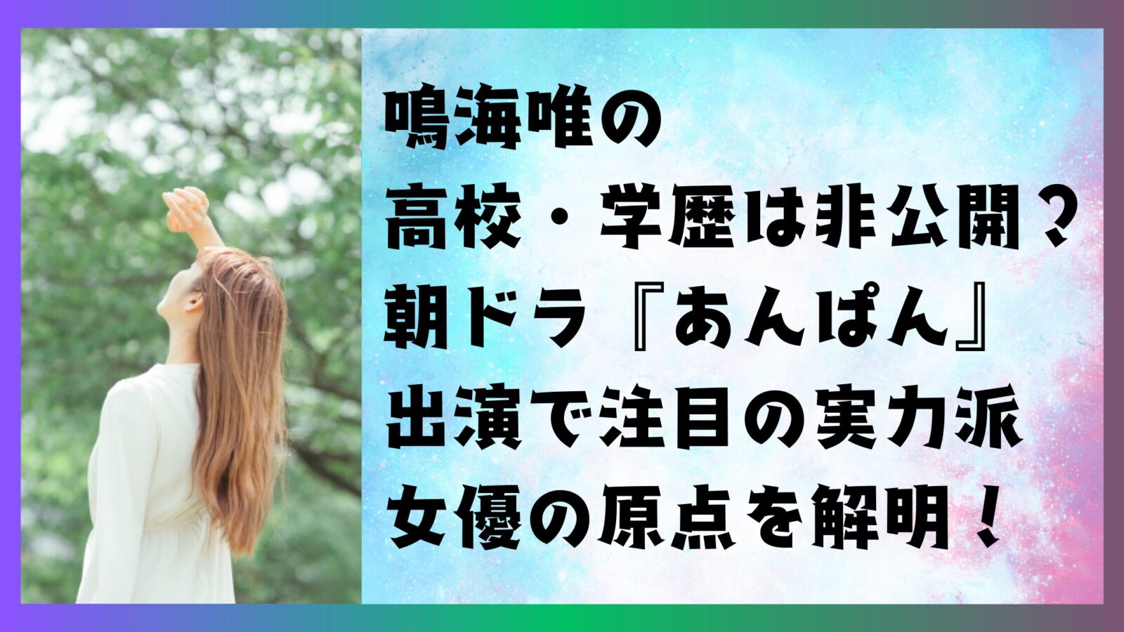 鳴海唯の高校・学歴は非公開?朝ドラ『あんぱん』出演で注目の実力派女優の原点を解明!